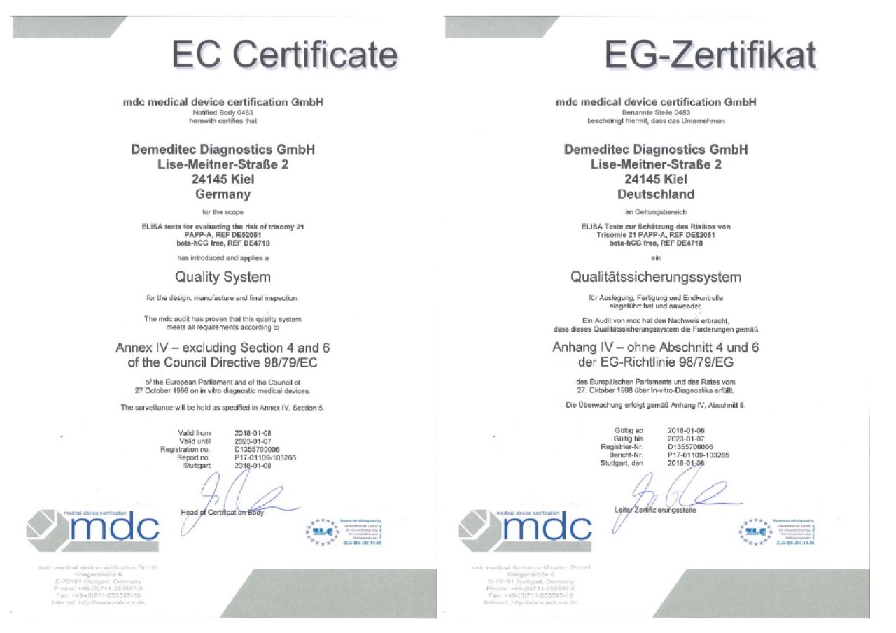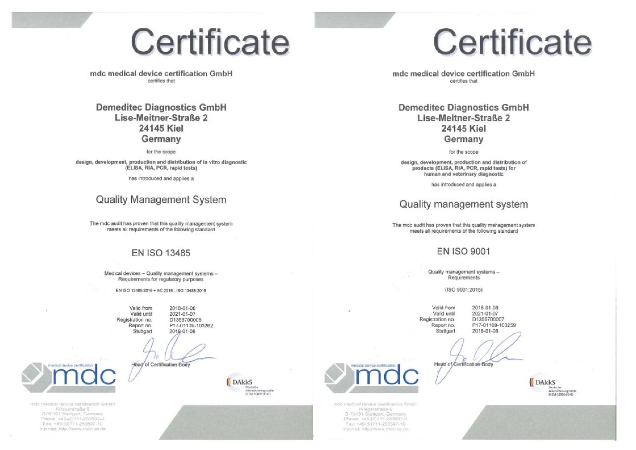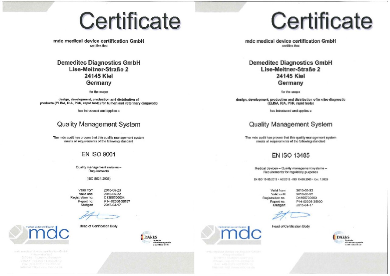 Gründung der Demeditec Diagnostics GmbH Start des Labormaterialien-Geschäftsregionaler Vertrieb